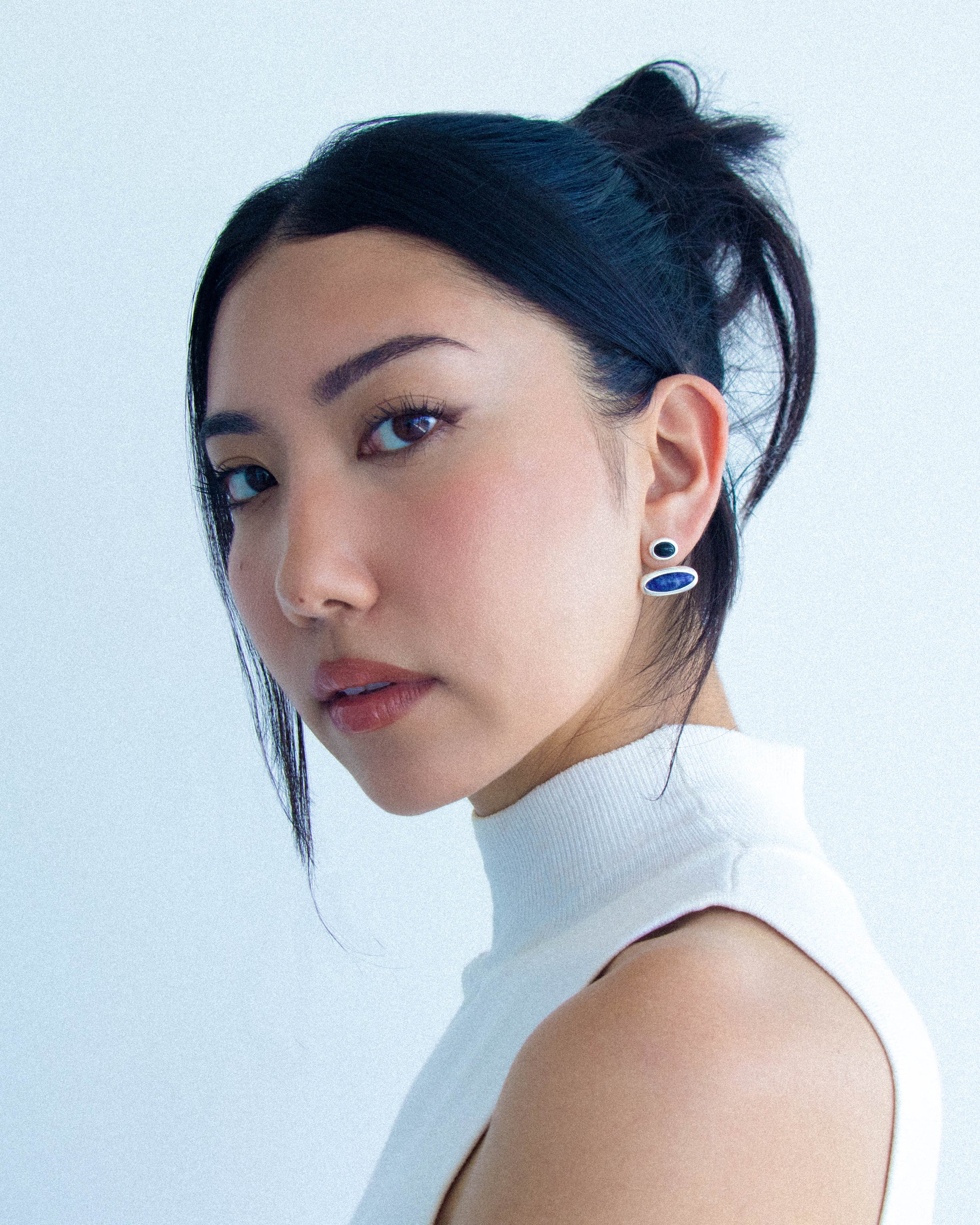 Inspired by the colours and form of the Orphism art movement, these pieces are designed for complete versatility. Wear them as studs or connect the full pair for a statement.