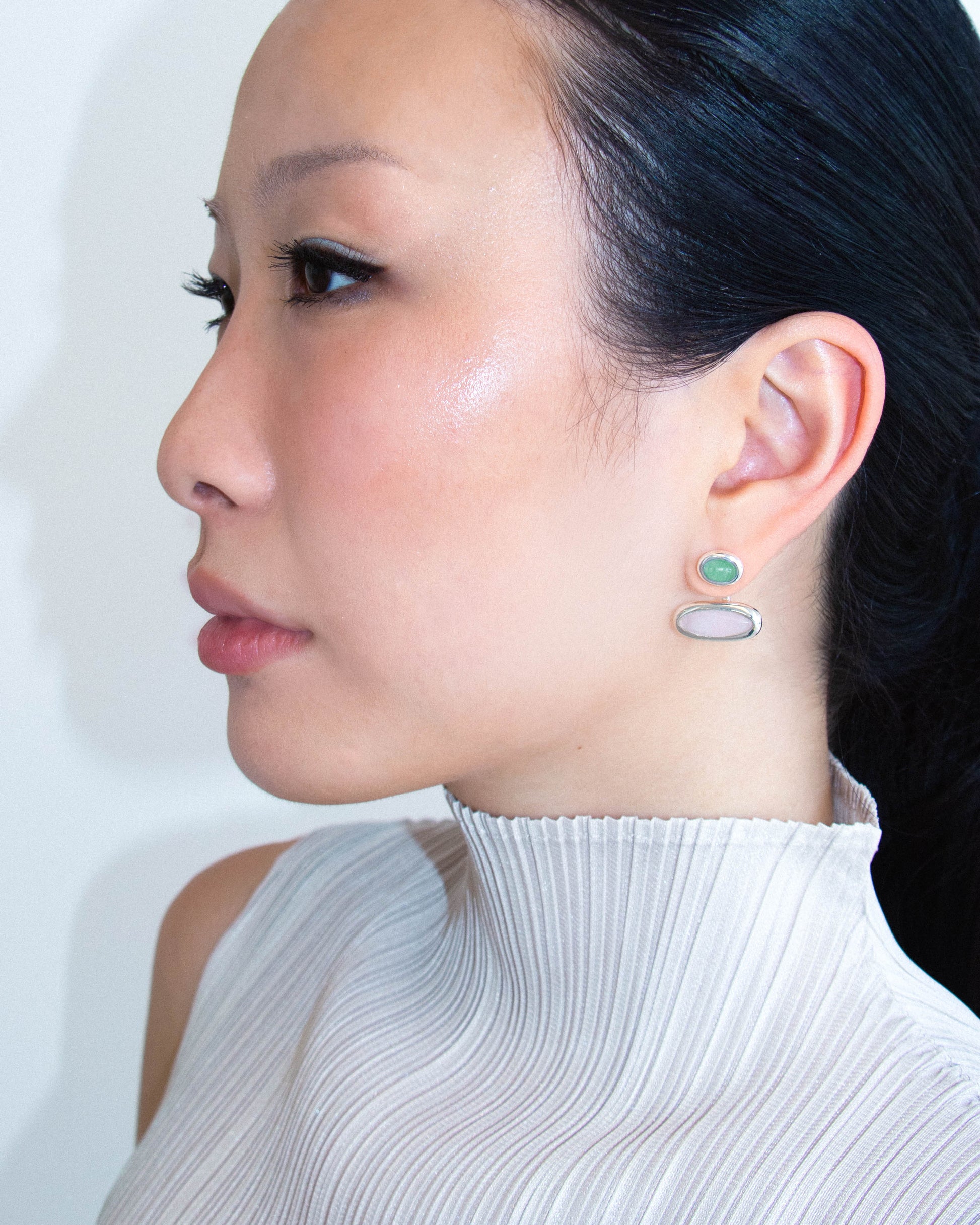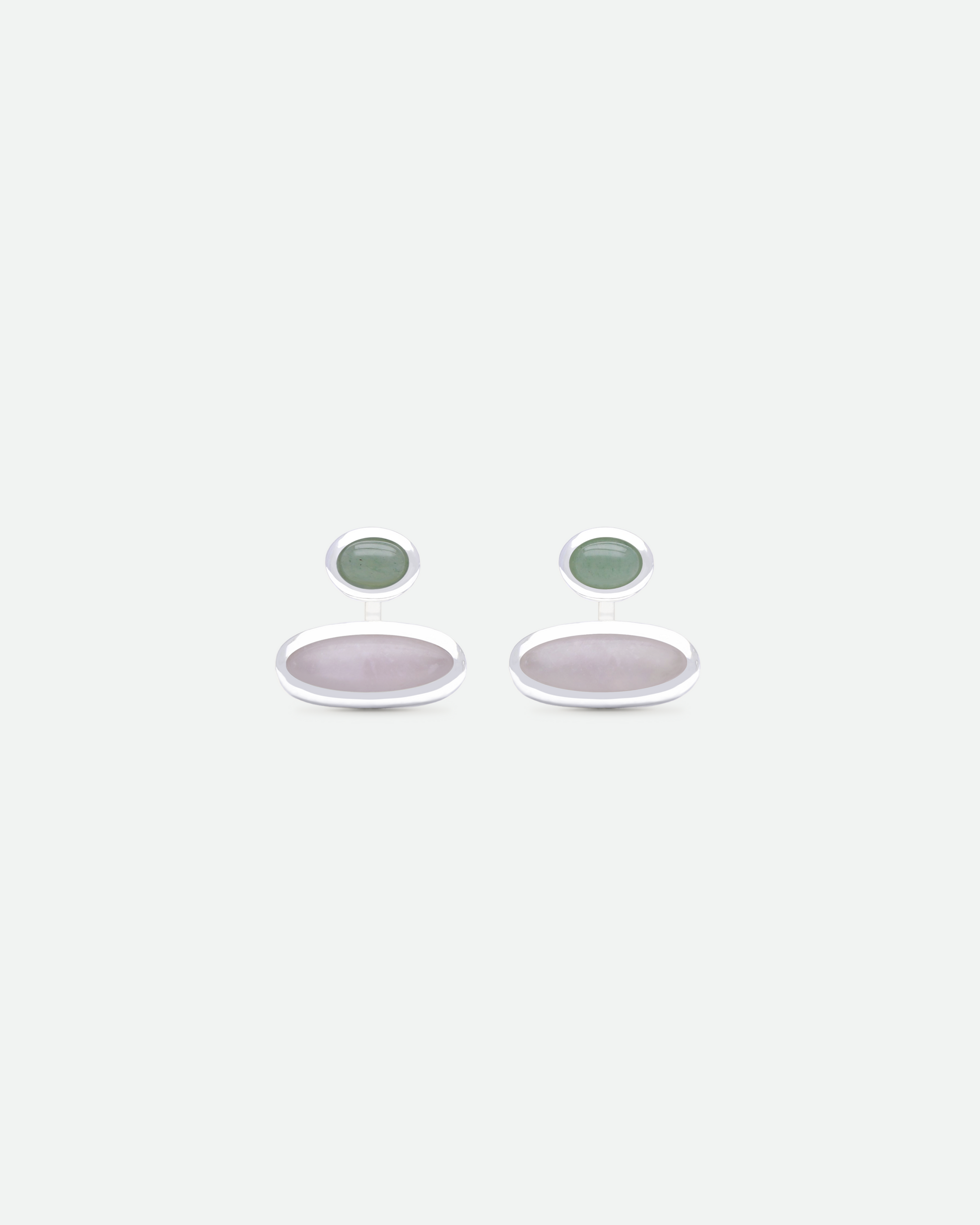 Hand polished sterling silver earrings with custom cut green aventurine and rose quartz.