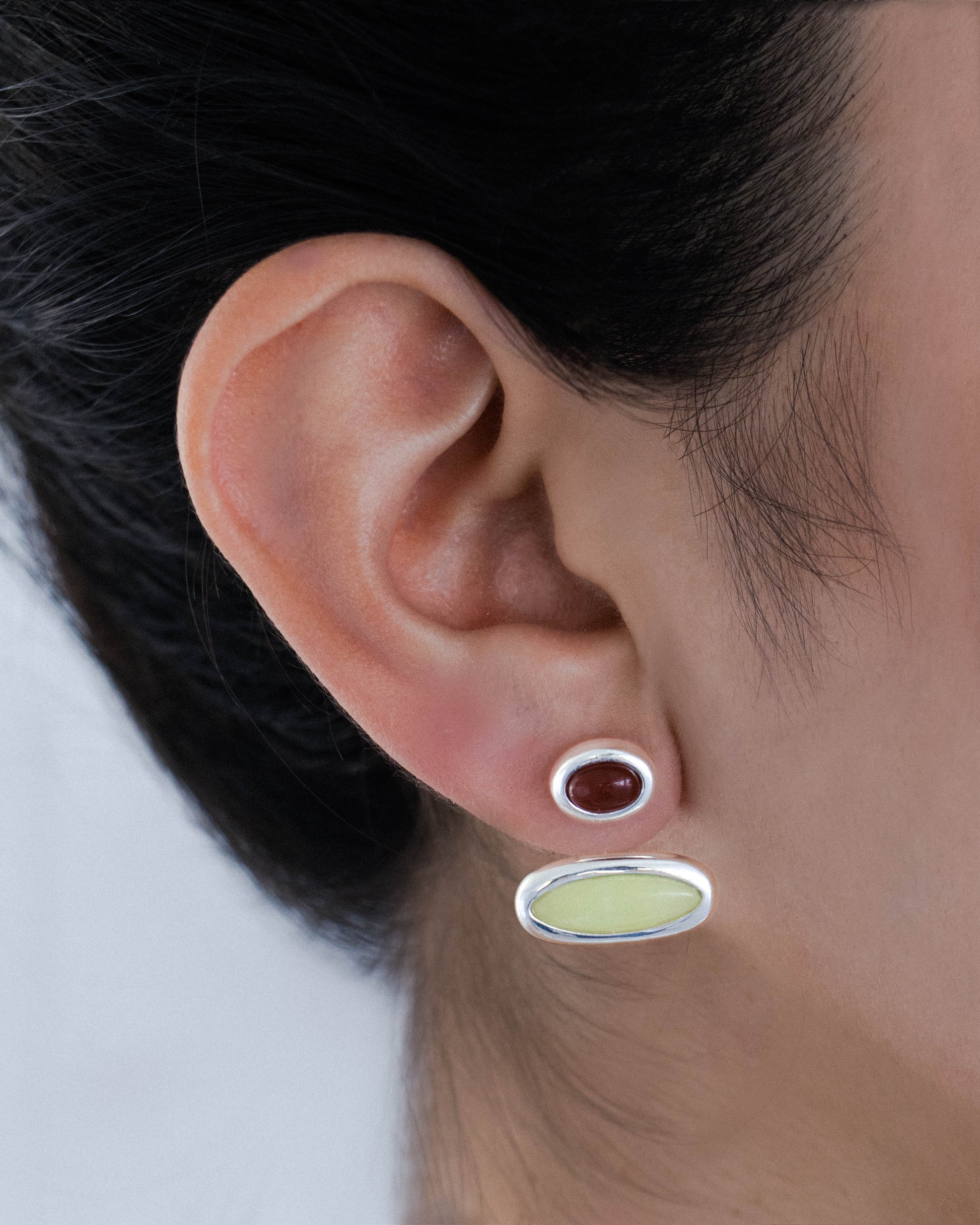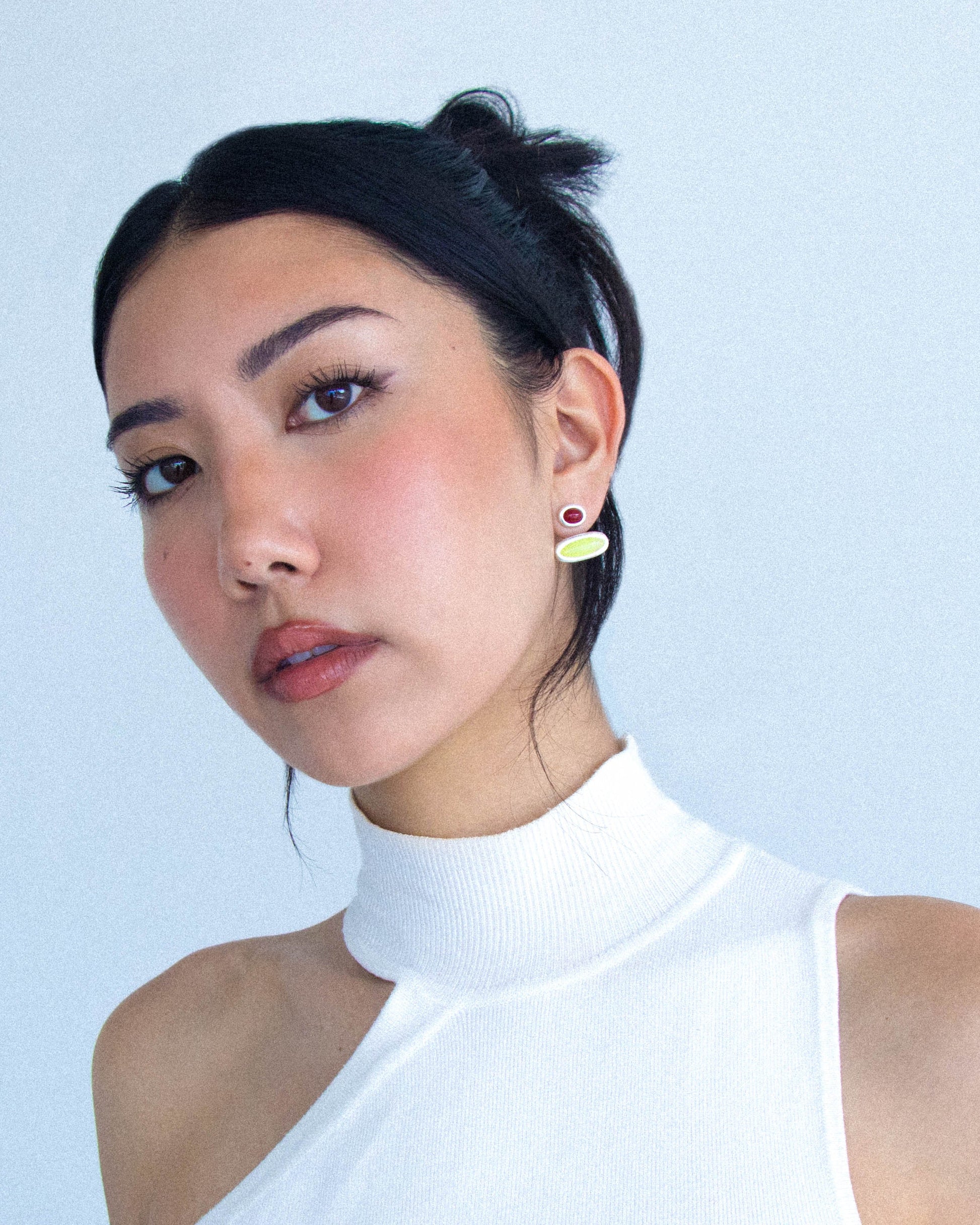 Inspired by the colours and form of the Orphism art movement, these pieces are designed for complete versatility. Wear them as studs or connect the full pair for a statement.